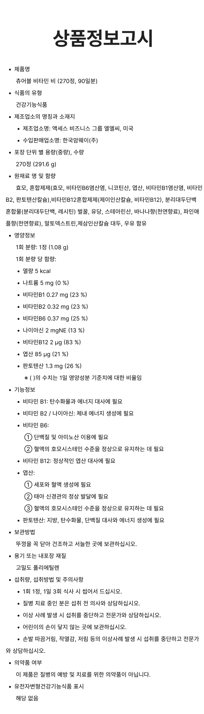 - 총 캡슐/정 수량: 270정