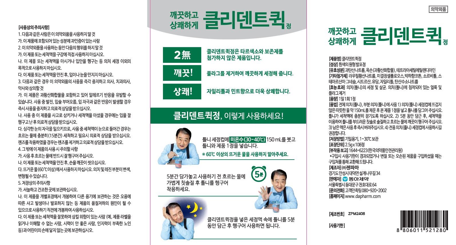| 품명 및 모델명 | 클리덴트퀵정 | 인증/허가 사항 | 의약외품 |