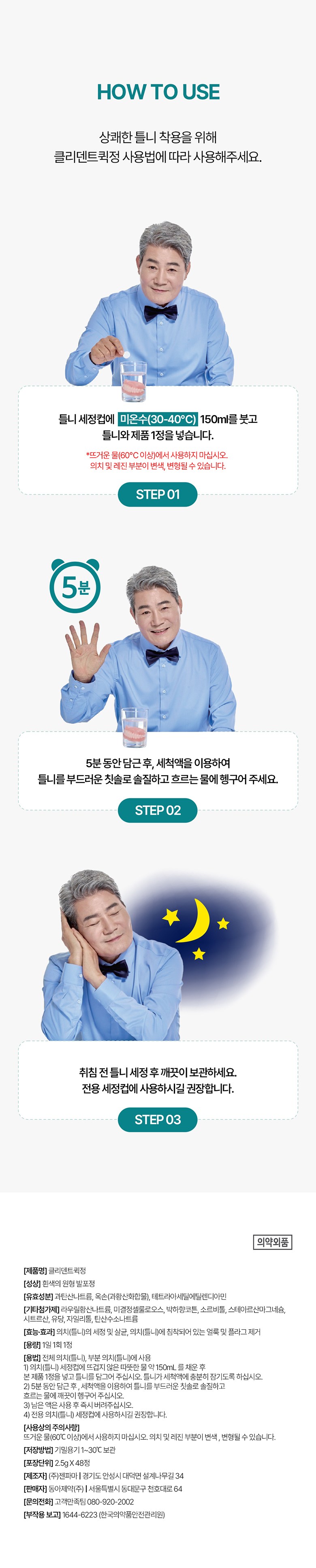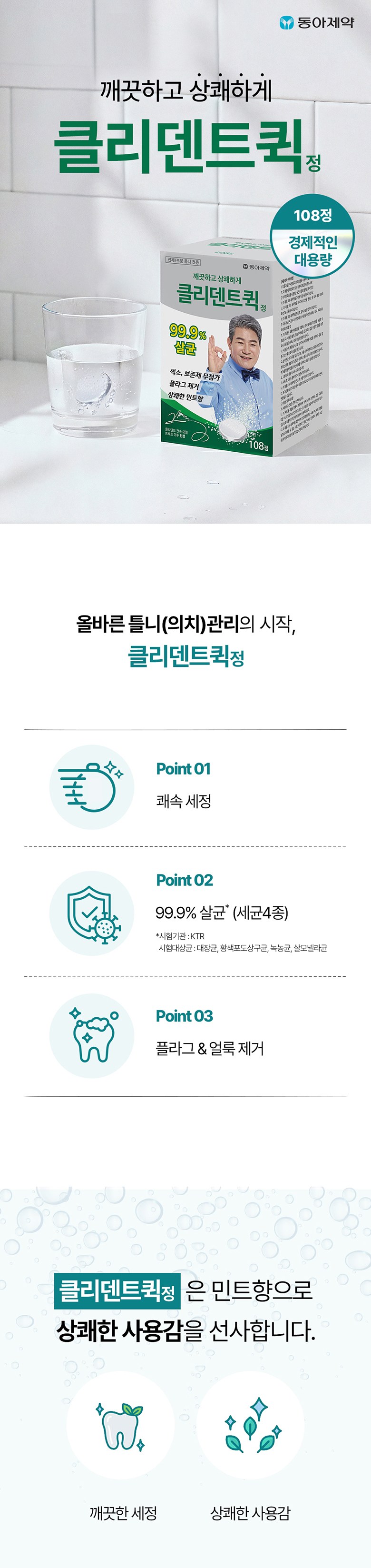 | 품명 및 모델명 | 클리덴트퀵정 | 인증/허가 사항 | 의약외품 |