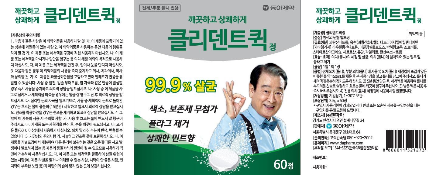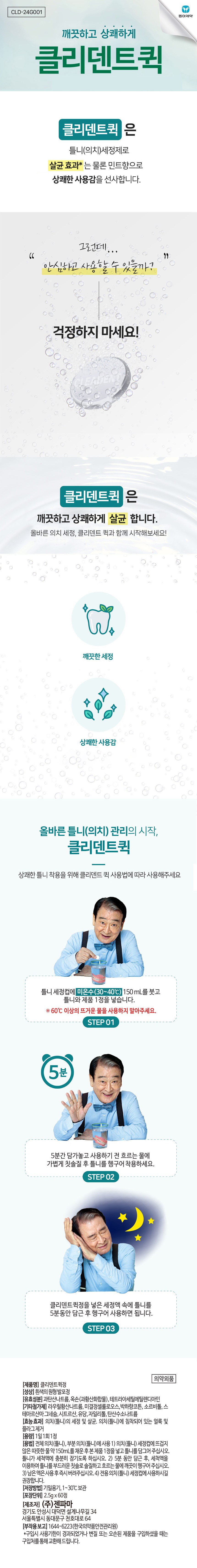 | 품명 및 모델명 | 클리덴트 퀵정 | 인증/허가 사항 | 의약외품 |