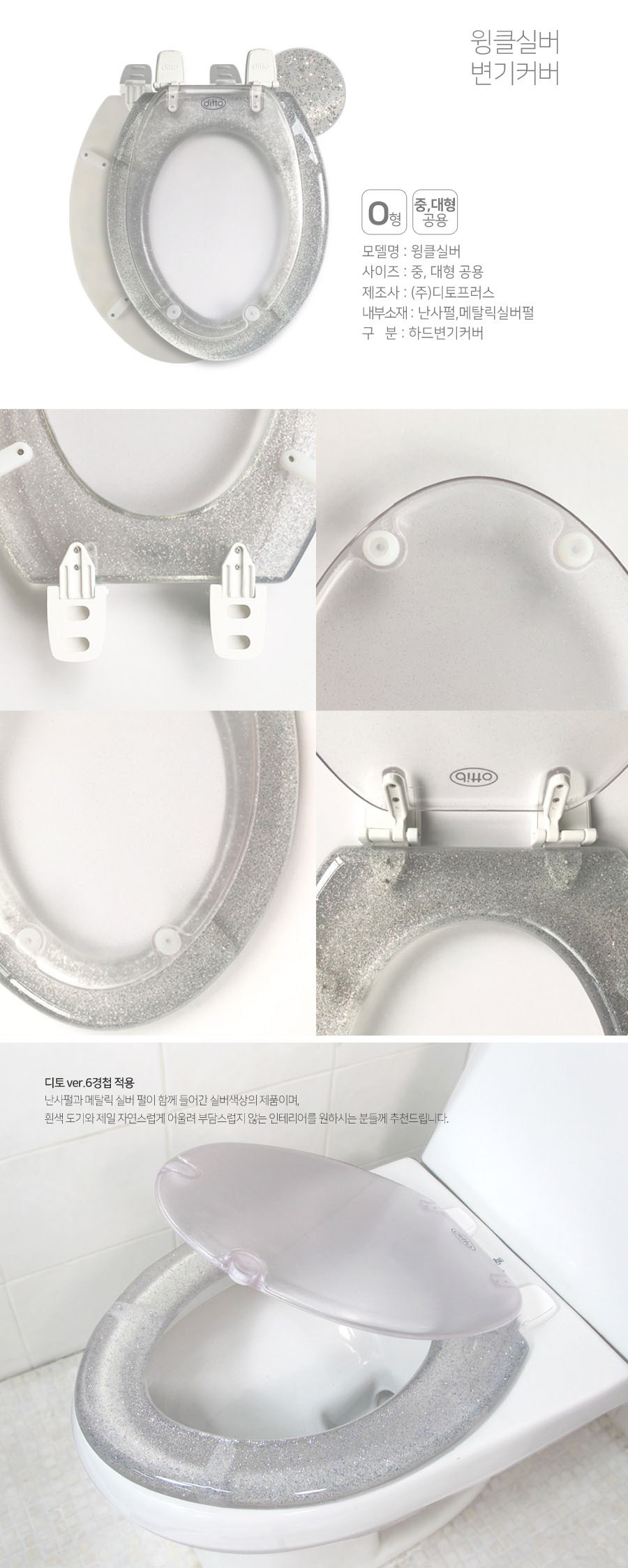| 품명 및 모델명 | 디토 변기시트 윙클실버 | 인증/허가 사항 | 해당없음 |
