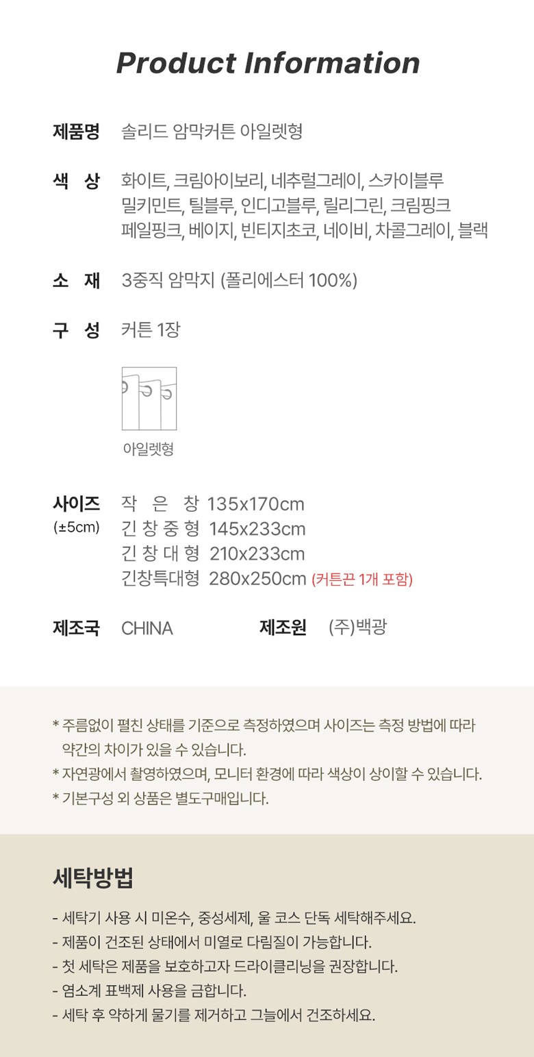 - 커튼종류: 암막
