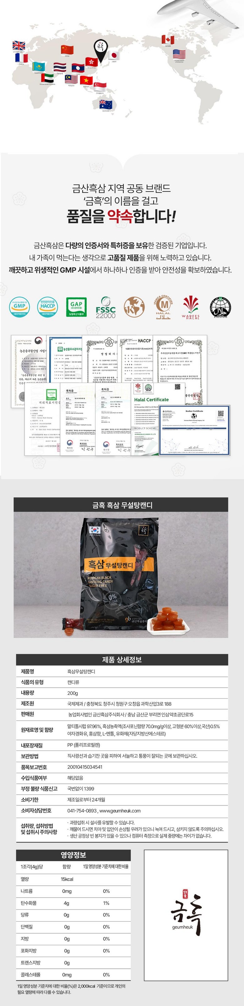 | 제품명 | 흑삼무설탕캔디 | 식품의 유형 | 상품상세참조 |