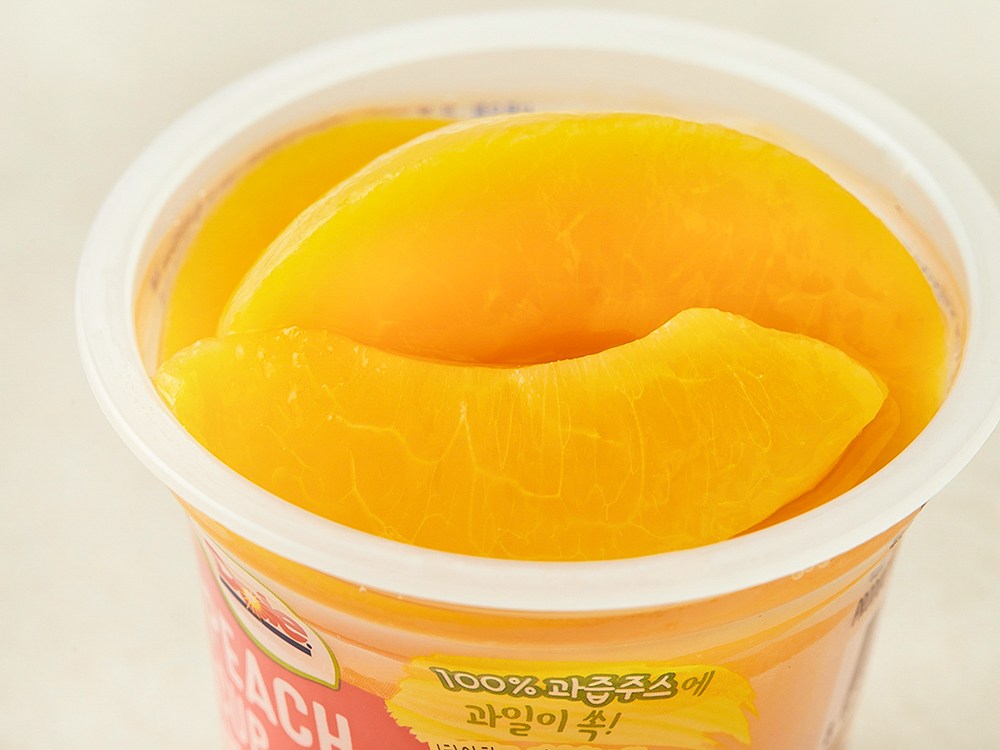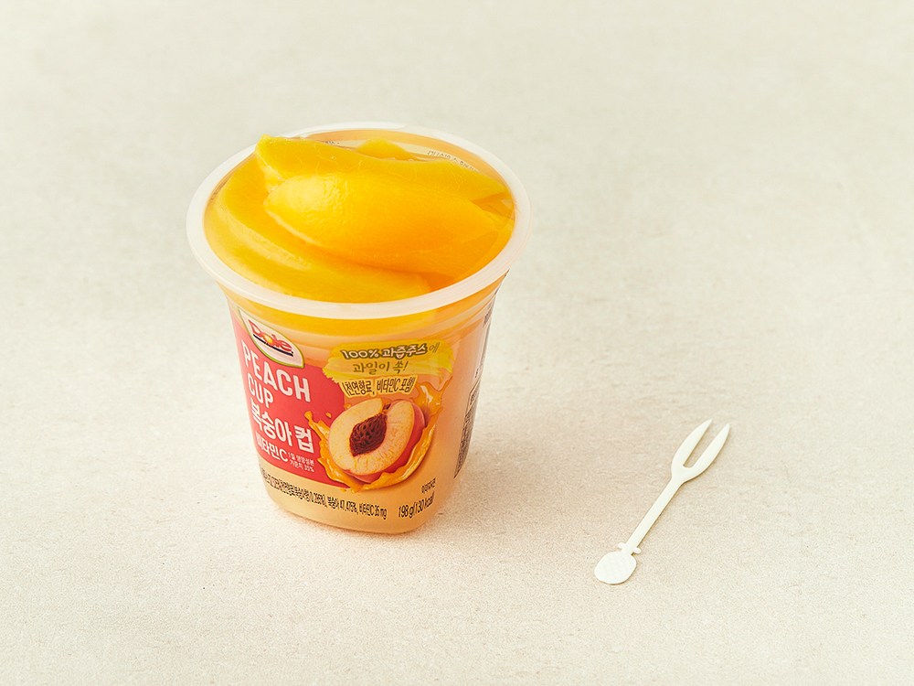 과채주스에 복숭아가 퐁당 빠져있는 후룻컵입니다. 한 손에 잡히는 컵 안에, 복숭아를 깔끔하게 손질해 담았어요. 덕분에 어디서든 편하게 먹을 수 있답니다. 달달하고 탱글탱글한 간편 디저트로 즐겨보세요.