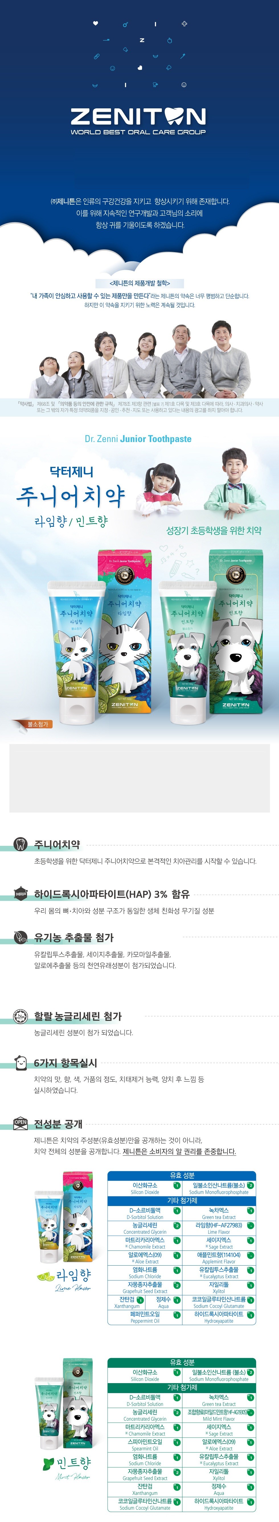 | 품명 및 모델명 | 닥터제니 주니어치약 | 인증/허가 사항 | 의약외품 |