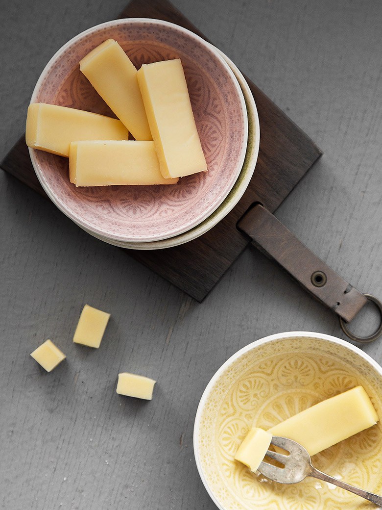 3. 남은 치즈는 큐브 형태로 잘라 카나페와 함께 플레이팅합니다.