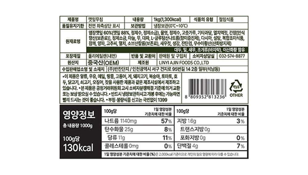 깻잎 특유의 향과 감칠맛 나는 양념이 일품인 반찬단지 깻잎무침입니다. 매콤한 양념으로 맛을 내 흰쌀밥과 잘 어울리는 반찬이에요. 깻잎에 매콤한 양념이 잘 배어있어 밥도둑이 따로 없답니다. 하나부터 열까지 엄선한 재료를 사용해 만들어 더 맛있는 반찬단지 깻잎무침을 만나보세요.