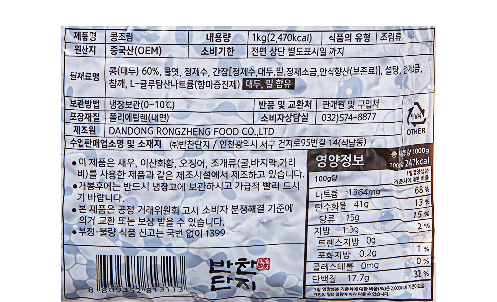 검은콩은 고소한 맛이 돋보이는 식재료지요. 맛있는 검은콩에 간장과 물엿을 넣고 짭짤한 밑반찬으로 만든 반찬단지의 콩조림을 소개해드릴게요. 고소한 검은콩을 짭짤하게 졸여내어 맛있고 입 안에서 씹히는 식감도 재미난 제품이지요. 맛있는 콩조림으로 입맛을 되살려보세요.