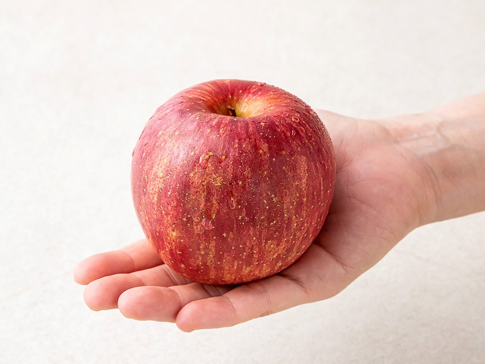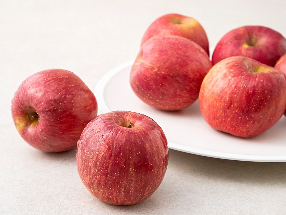 달콤하고 청량한 과즙을 빼곡하게 품은 사과예요. 새빨갛게 잘 익어 탐스럽고 먹음직스러운 모양새를 자랑하지요. 아삭아삭한 과육을 베어 물면 입안 가득 달달하게 퍼지는 향미가 기분까지 상큼하게 만들어줄 거예요.