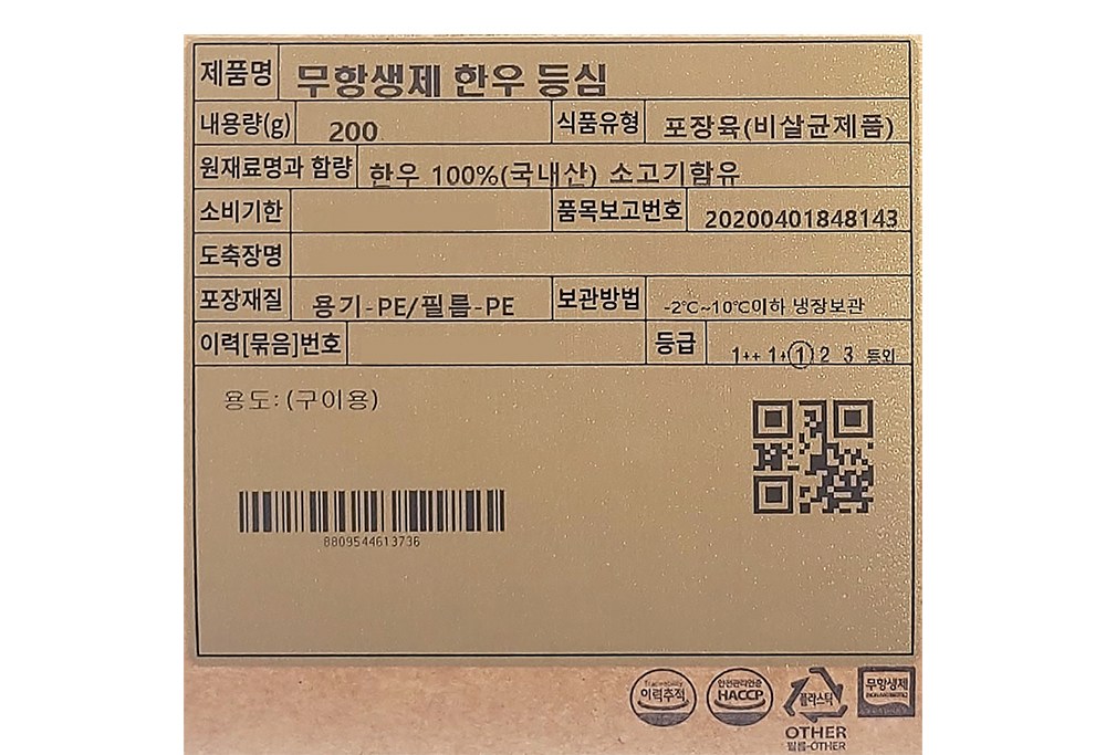 | 소비기한 또는 품질유지기한 | 소비기한(또는 유통기한) : 2026년 03월 09일 이거나 그 이후인 상품 | 세부 품목군별 표시사항 | 축산물 등급표시 : 1등급 / 이력번호 표시유무 : 이력번호 표시제품임 |
