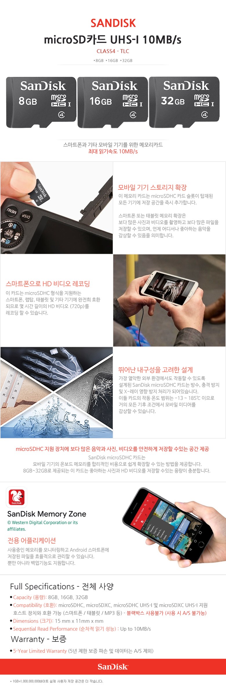 | 품명 및 모델명 | 샌디스크 microSD CLASS4 10MB/s | 인증/허가 사항 | 해당사항없음 |