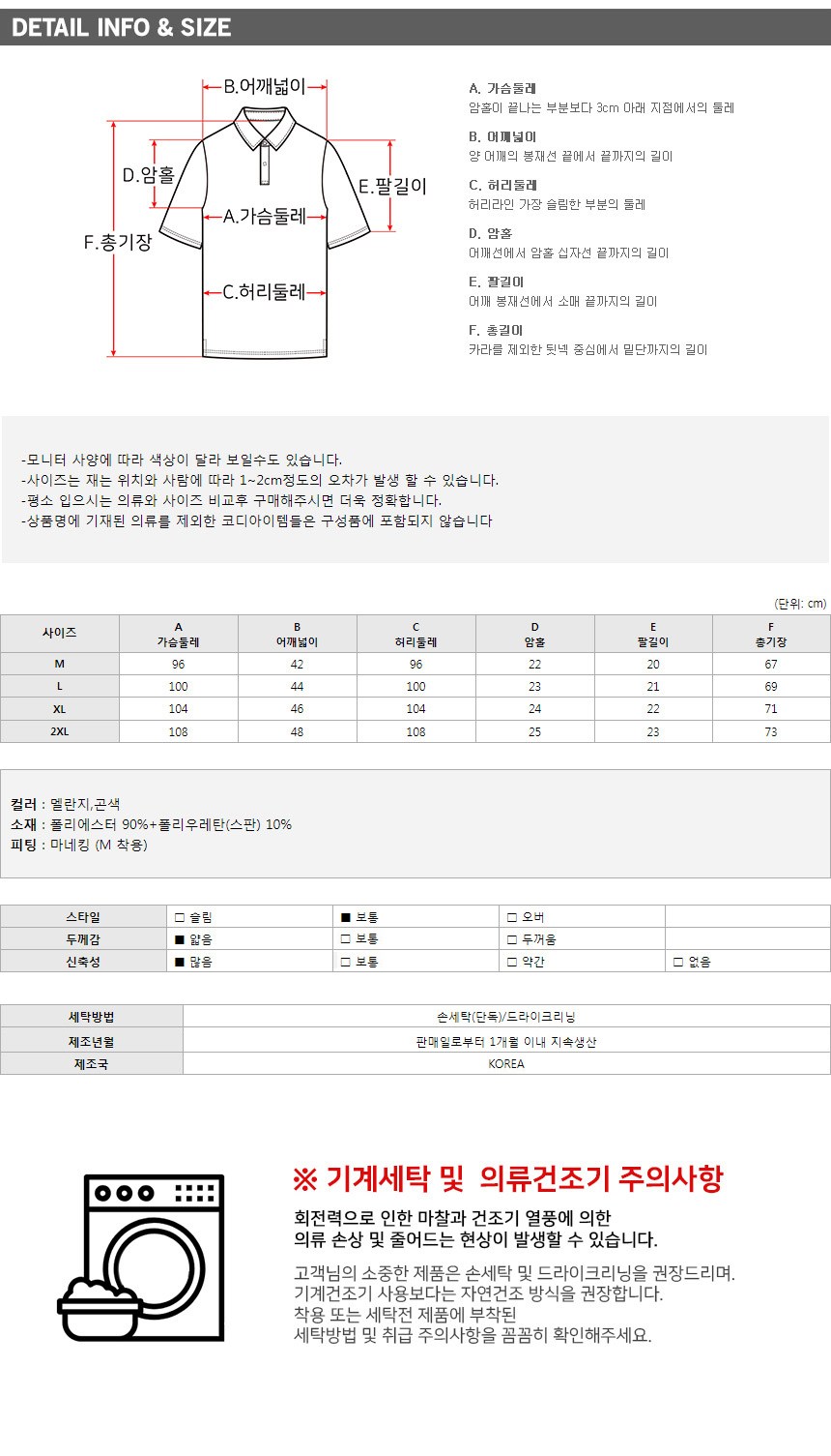 | 제조국 | 대한민국 | 세탁방법 및 취급시 주의사항 | 컨텐츠 참조 |