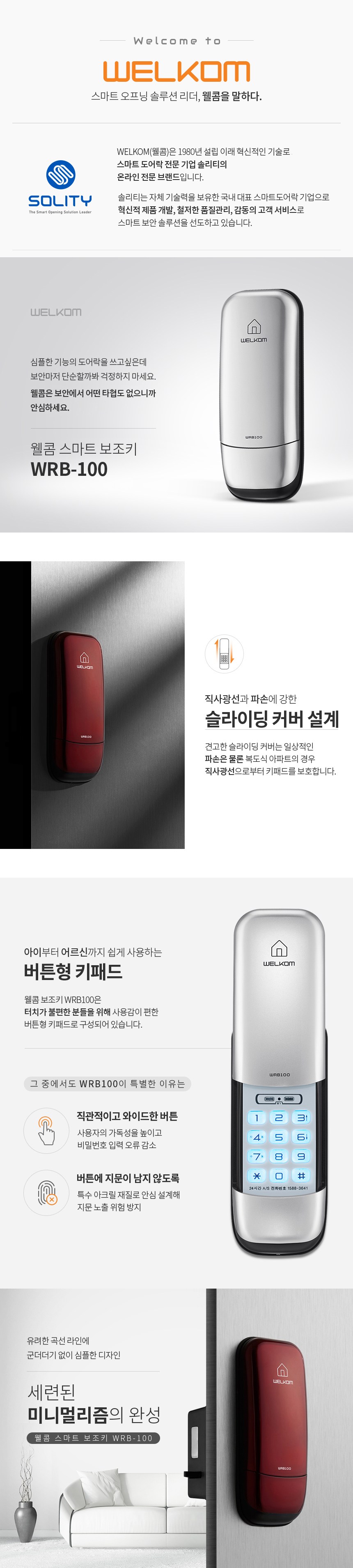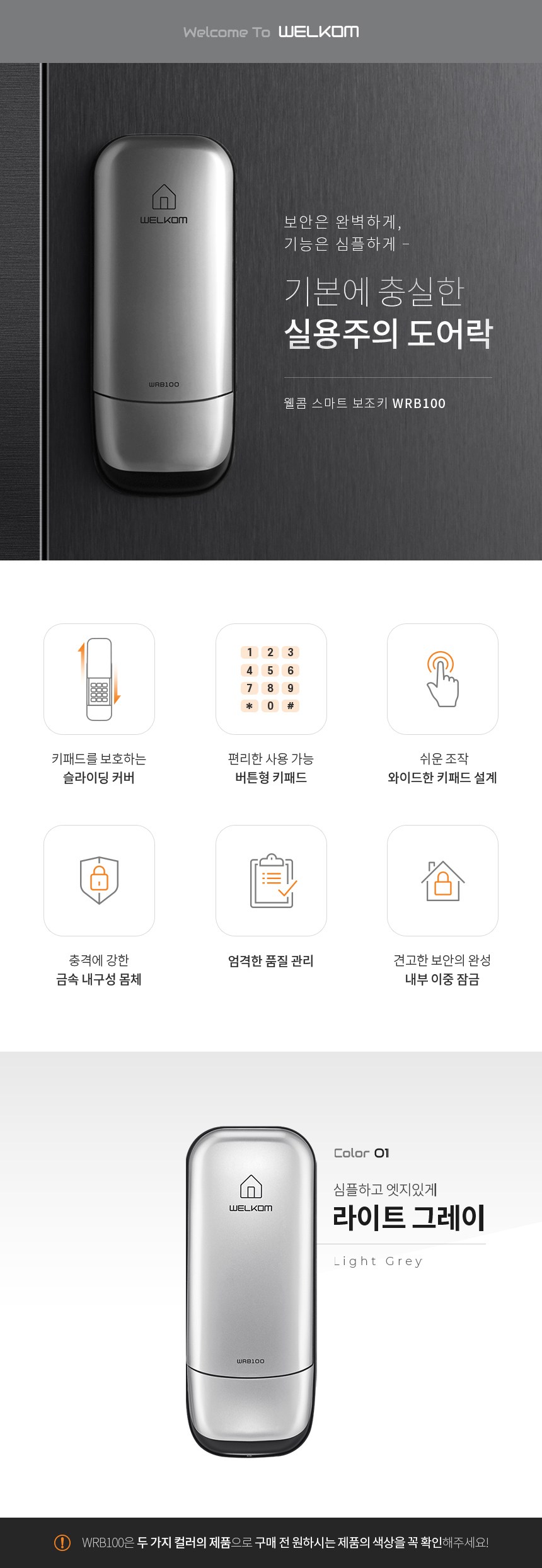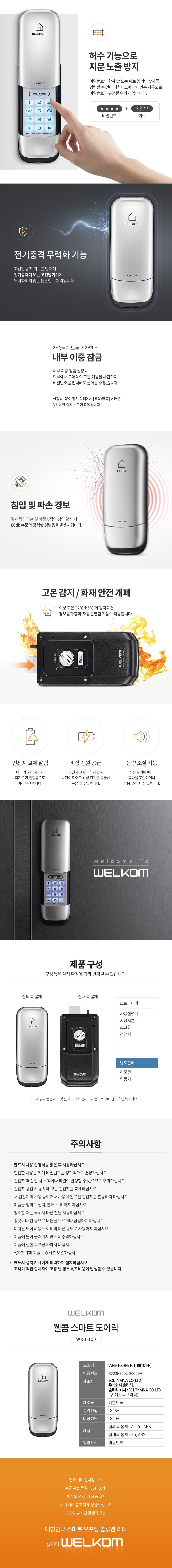 | 품명 및 모델명 | 웰콤 실버 번호전용 보조키형 디지털도어락 번호키 WRB-100 (RB101, RB101-R) | KC 인증정보 | 도어락 : B223R5002-20009A , MSIP-REM-HG0-RB101 , KS C 9806 제 18-0136호 / 건전지 : B052R1059-19002 |