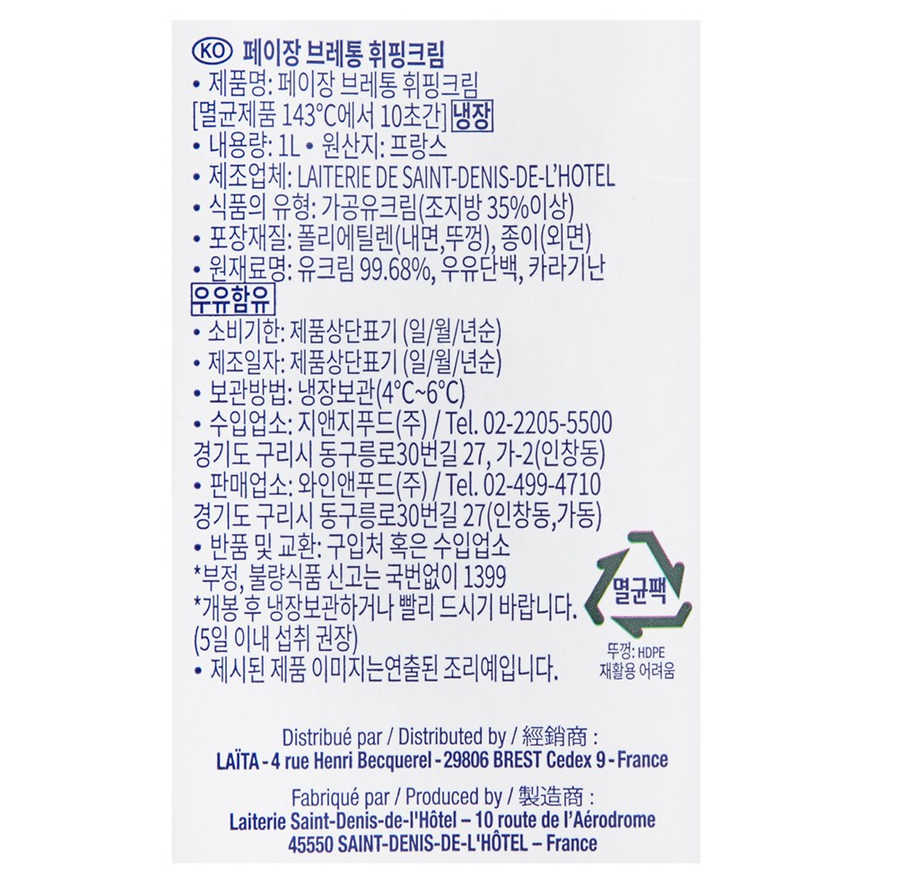페이장 브레통 휘핑크림