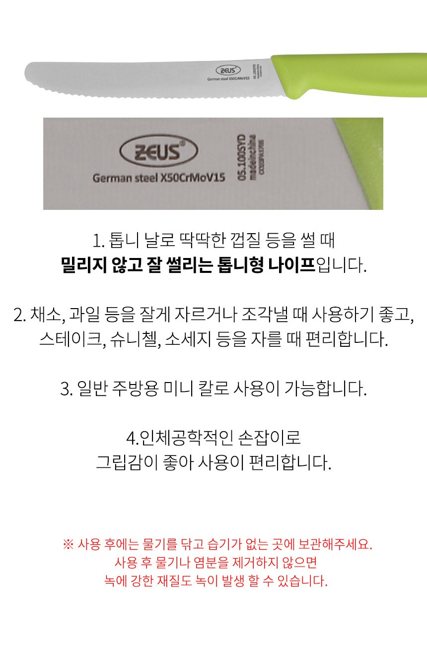 | 품명 및 모델명 | 제우스 칼라 톱니과도 | 재질 | 컨텐츠 참조 |