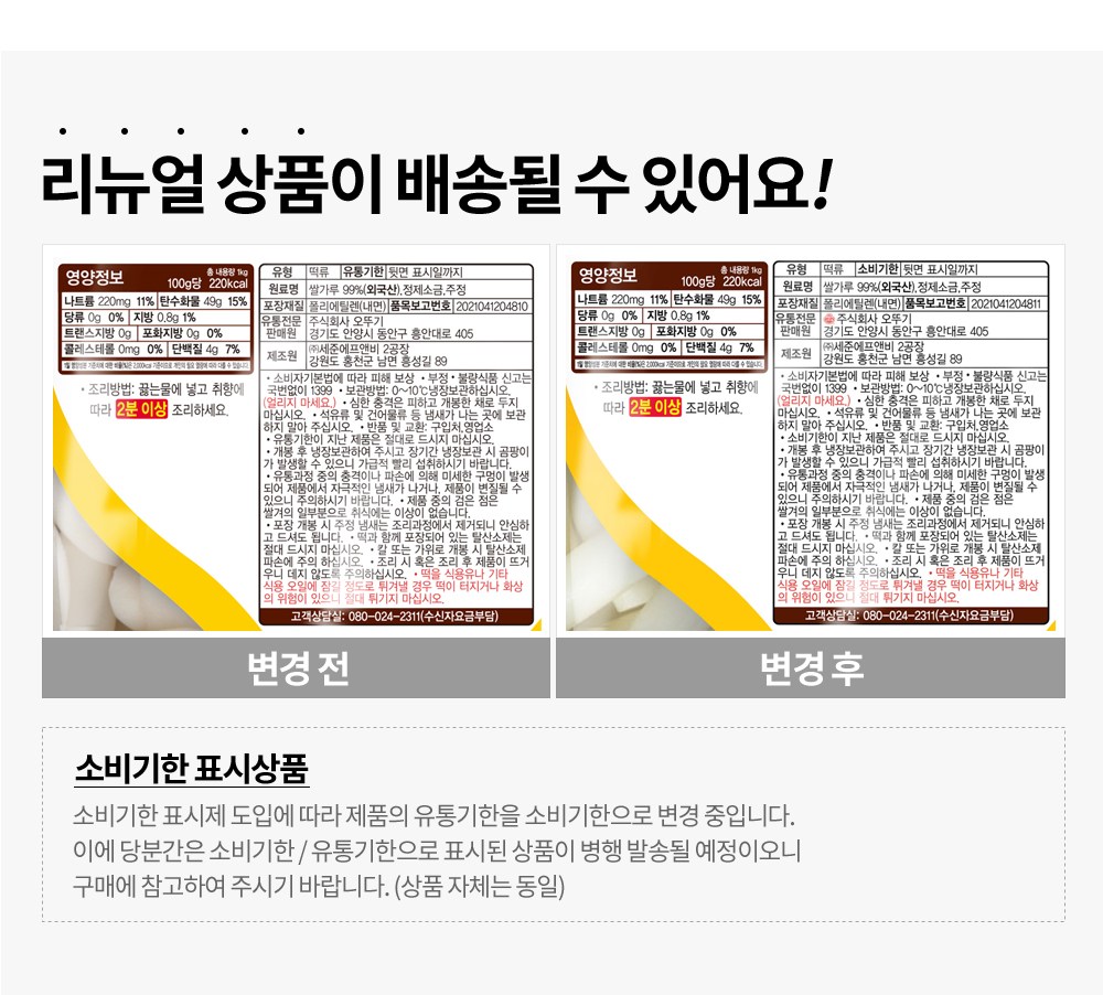 6. 떡을 냉동 보관 후 조리하면 떡이 풀어지니 절대 냉동 보관하지 말아주세요.