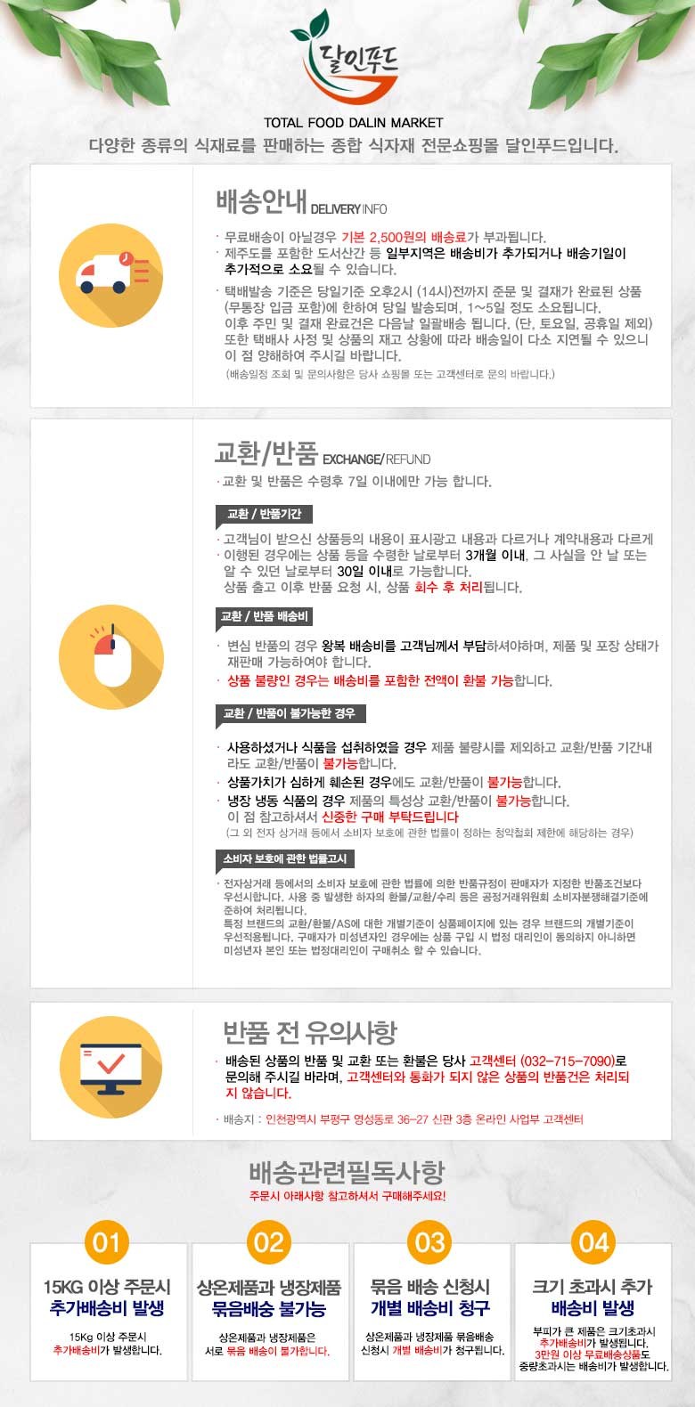 - ㆍ교환/반품에 관한 일반적인 사항은 판매자가 제시사항보다 관계법령이 우선합니다.