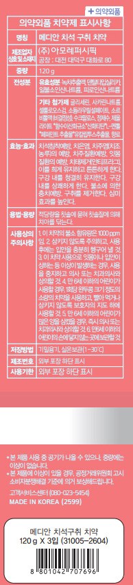 | 품명 및 모델명 | 메디안 치석 구취 치약 | 인증/허가 사항 | 의약외품 |