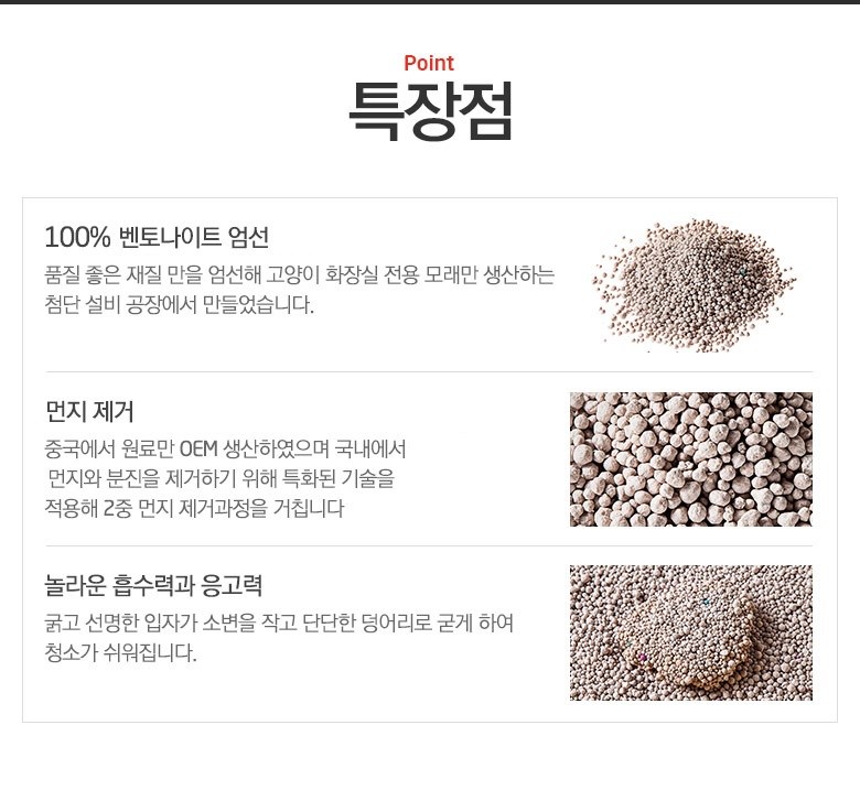 - 용변 후 뒷처리가 깔끔하고 먼지 날림이 적은 제품