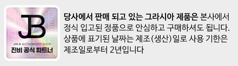 | 제조국(원산지) | 대한민국 | 제조자(수입자) | 그라시아 진비 |