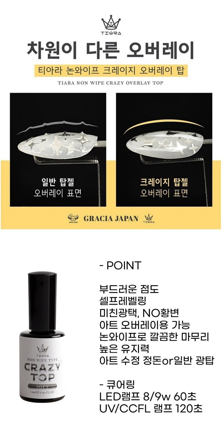| 품명 및 모델명 | 그라시아 티아라 논와이프 크레이지 탑젤 소프트 14ml | 인증/허가 사항 | 상세페이지 참조 |