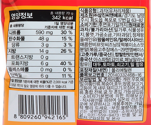 - 과자 맛: 매운맛