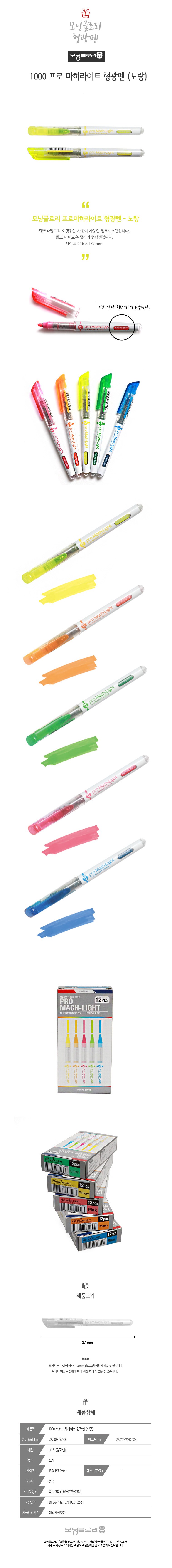 | 품명 및 모델명 | 1000 프로 마하라이트 형광펜 (노랑) | 인증/허가 사항 | 해당없음 |