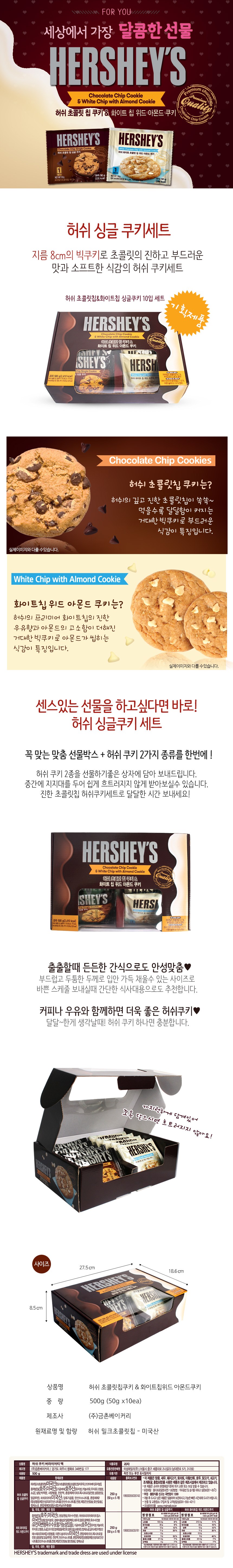| 제품명 | 허쉬 초콜릿 칩 50g x 5p + 화이트 칩 위드 아몬드 쿠키 50g x 5p 세트 | 식품의 유형 | 과자 |
