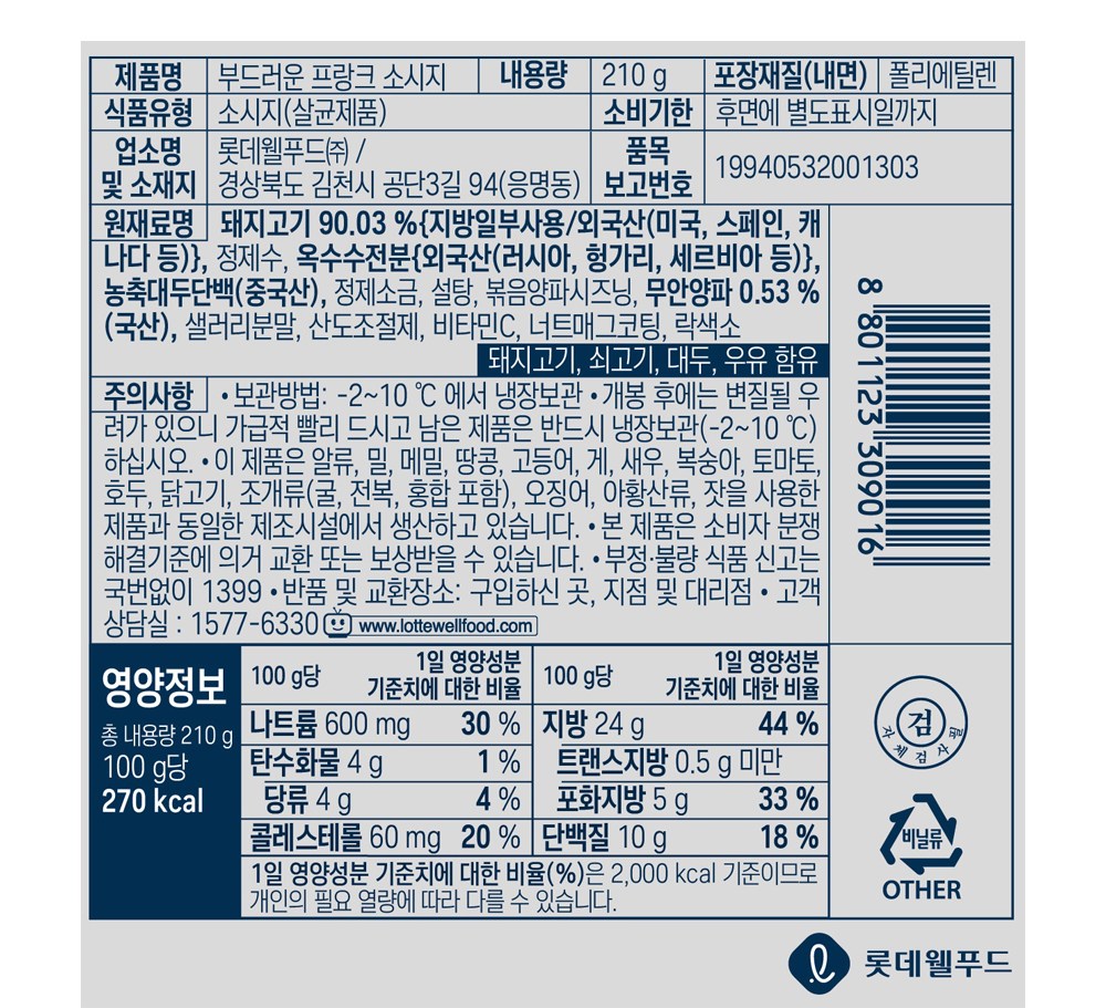 | 포장단위별 내용물의 용량(중량), 수량 | 210g x 8개,1개 | 원재료명 및 함량 | 컨텐츠참조 |