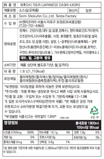 | 제품명 | 와후다시 가오리 | 식품의 유형 | 컨텐츠 참조 |