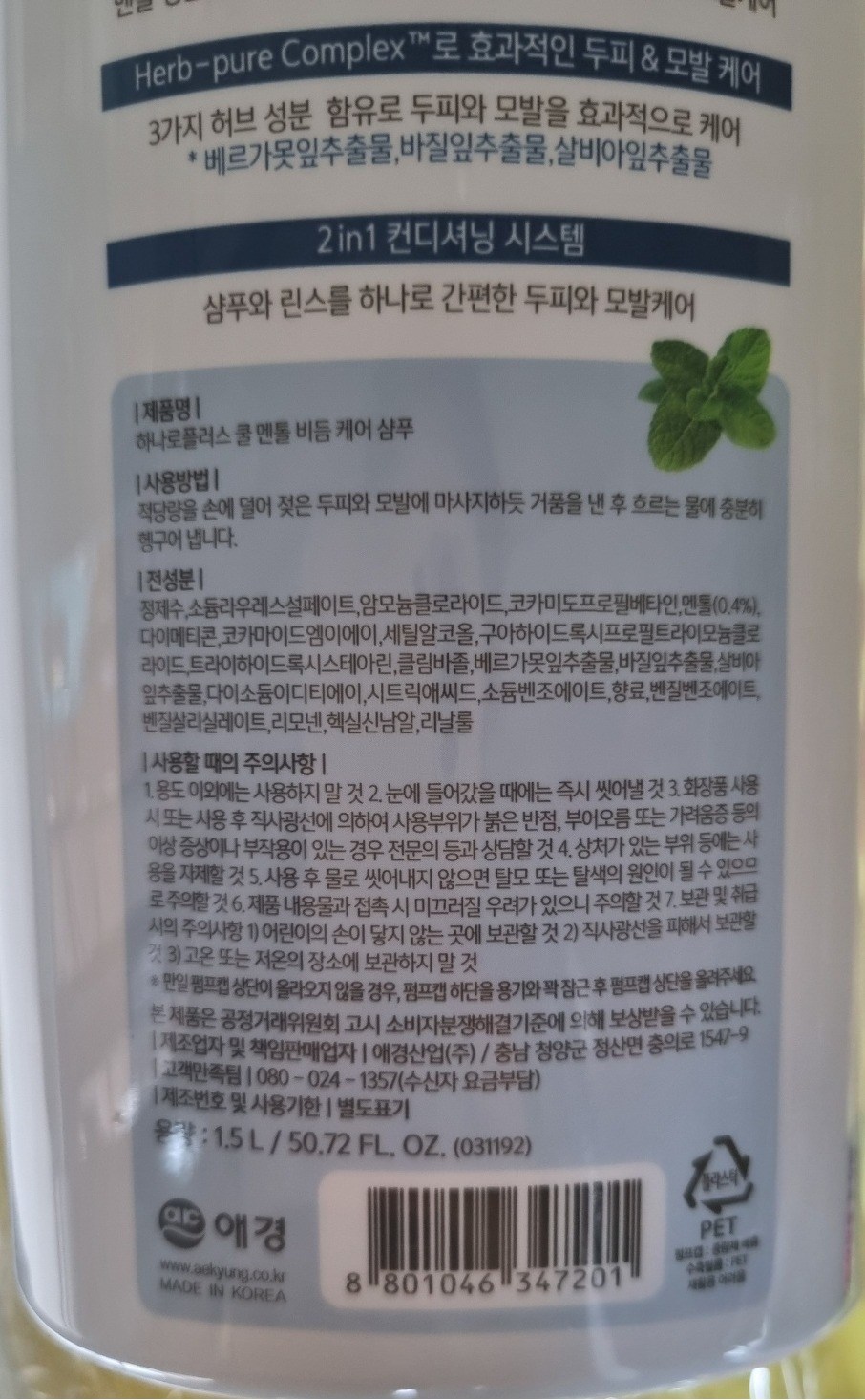개당 용량: 1.5L × 2개