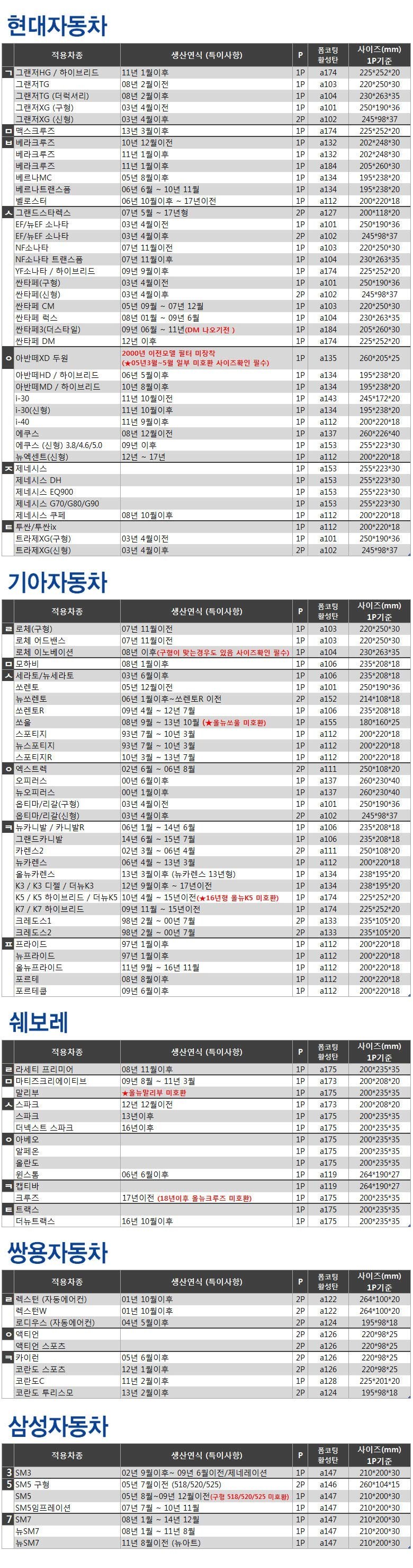 | 제조국 | 대한민국 | 크기 | 차종별 상이 |