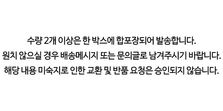 - ㆍ모니터 해상도의 차이로 인해 색상이나 이미지가 실제와 달라, 고객이 단순 변심으로 교환/반품을 무료로 요청하는 경우