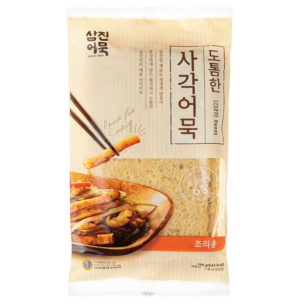 곱게 다진 생선살을 반죽해 기름에 튀긴 어묵은 담백한 듯 고소한 맛과 탱탱한 식감이 일품이지요. 삼진어묵의 도톰한 사각어묵은 적당한 크기로 잘라 반찬으로 볶아 먹거나 어묵탕으로 요리하기 좋은 어묵이에요. 사각형 모양은 다양하게 잘라 사용하기 좋고, 도톰해서 쫀득한 식감 또한 만족스럽죠. 고급 생선살을 사용하여 고소하고 담백한 감칠맛이 진하답니다. 엄선된 재료가 선사하는 풍성하고 깊은 맛의 어묵을 맛보고 싶을 때 선택해보세요.