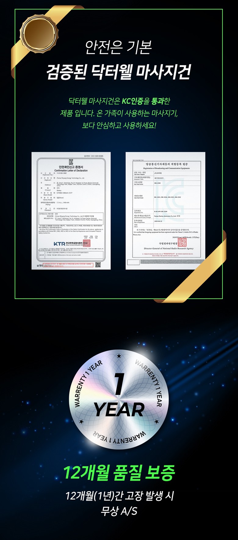 | 제조자(수입자) | Fujian Darius Electronic Co.,Ltd./(주)닥터웰 | 제조국 | 중국 |