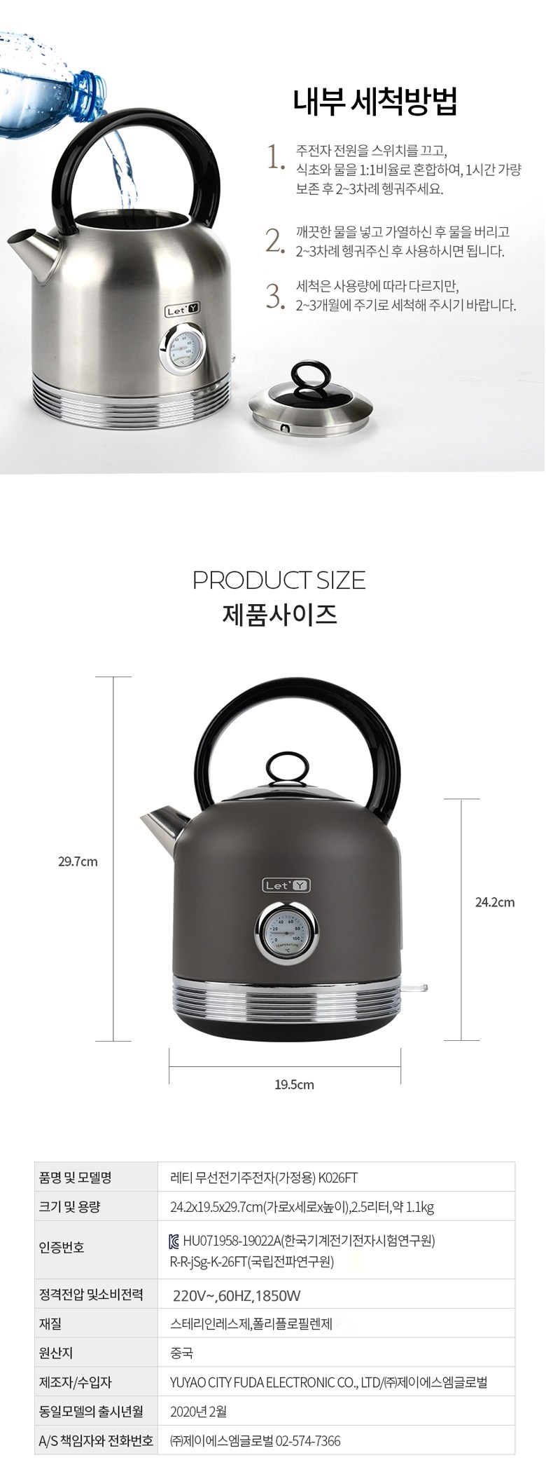 | 품명 및 모델명 | 레티 레트로 무선전기주전자(가정용) K026FT | KC 인증정보 | HU071958-19022A, R-R-jSg-K-26FT |
