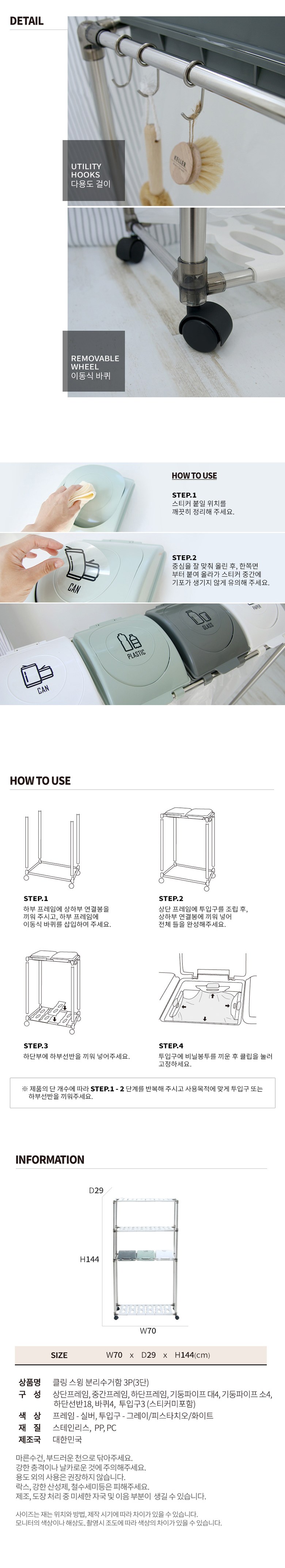 | 품명 및 모델명 | 클링 스윙 분리수거함 (3단) | 인증/허가 사항 | 해당없음 |