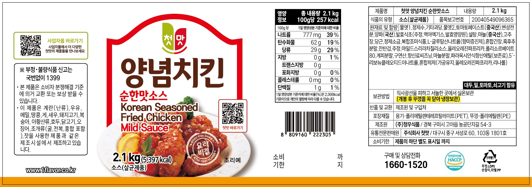- 소스 종류: 양념치킨