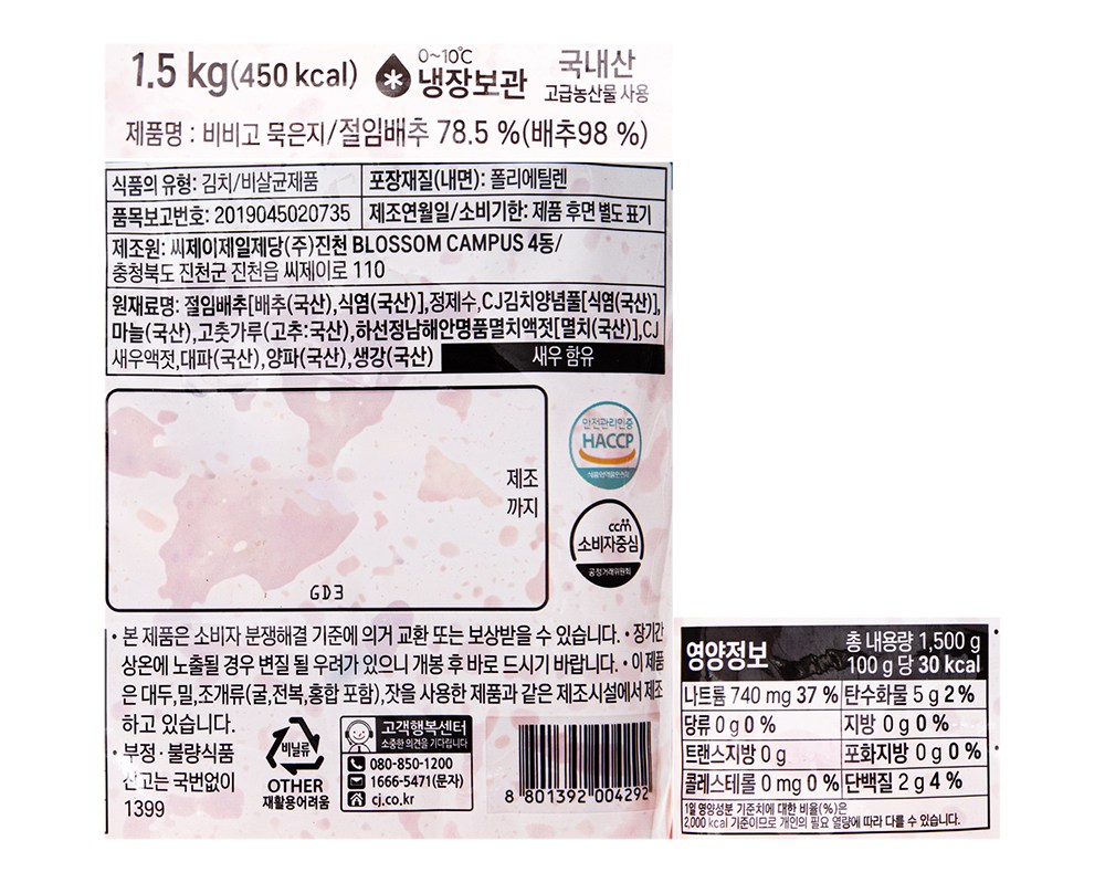 | 포장단위별 내용물의 용량(중량), 수량 | 1.5kg x 2개 | 원재료명 및 함량 | 컨텐츠 참조 |