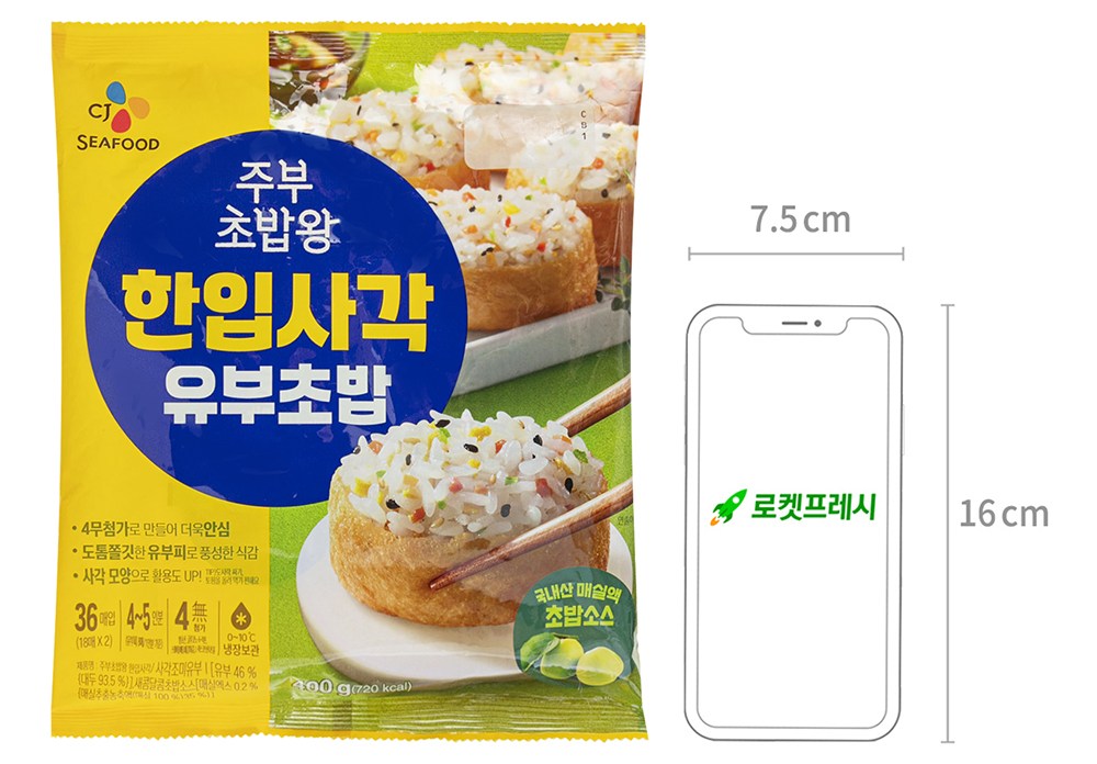 유부초밥은 가족과 함께하는 나들이 도시락 메뉴로 제격인데요. 입에 쏙 넣기 좋은 크기의 한입 사각 유부초밥을 손쉽게 완성해보세요. 초밥소스와 야채볶음이 동봉되어 있어, 밥만 준비하면 금세 만들 수 있답니다. 한입 먹어보면, 새콤달콤한 감칠맛으로 입맛을 사로잡을 거예요.