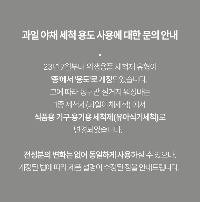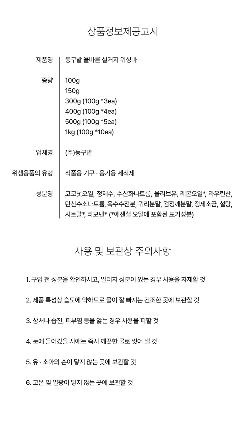 | 품명 및 모델명 | 동구밭 올바른 설거지 워싱바 | 인증/허가 사항 | 위생용품 |