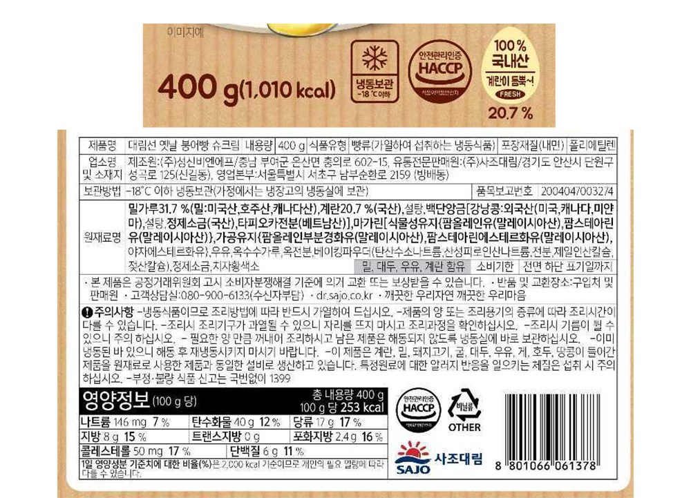 | 포장단위별 내용물의 용량(중량), 수량 | 400g x 3개,1개 | 원재료명 및 함량 | 컨텐츠 참조 |