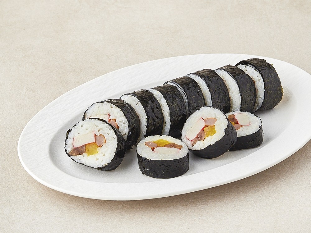 우엉, 단무지, 게맛살, 햄 등으로 구성