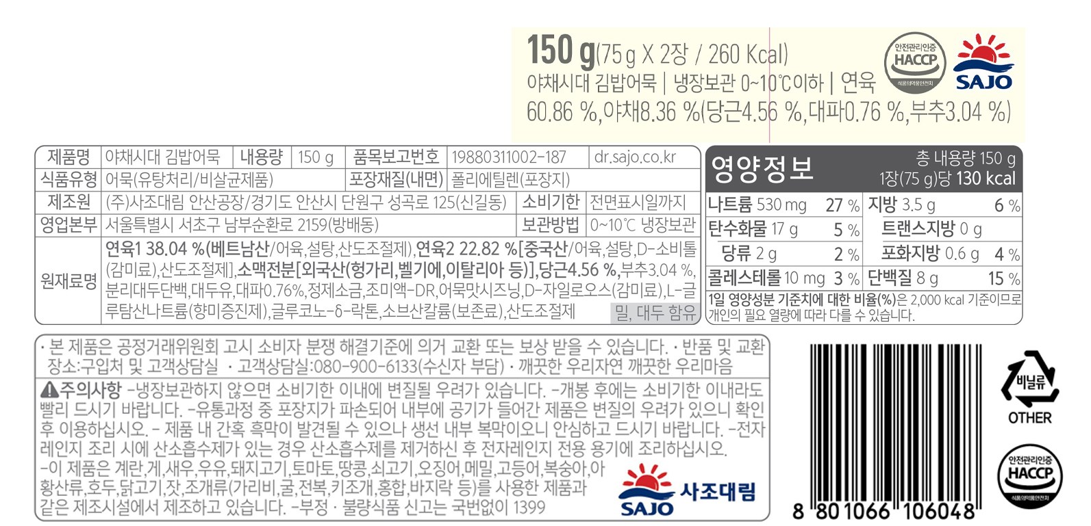 | - 한 줄씩 넣기 좋은 김밥용 어묵 | |