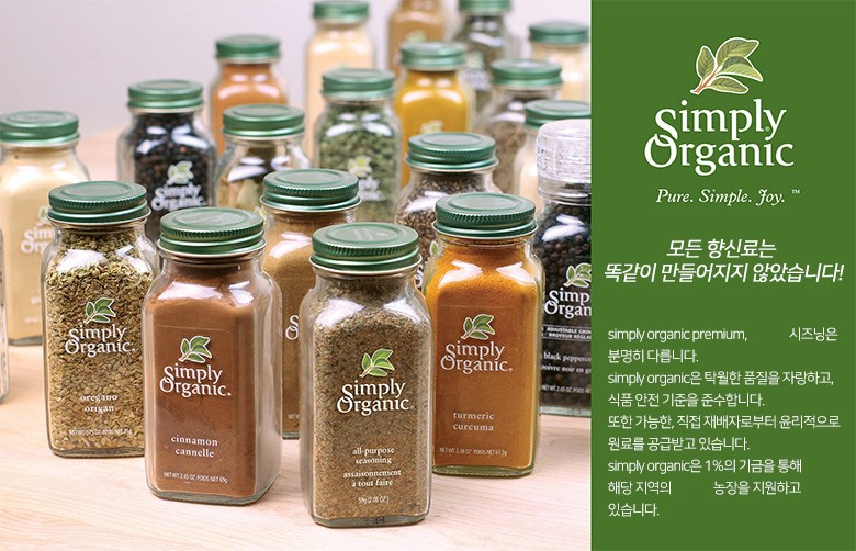| 생산자 및 소재지 | Simply Organic, US | 제조연월일, 소비기한 또는 품질유지기한 | 상세 내용 참조 |