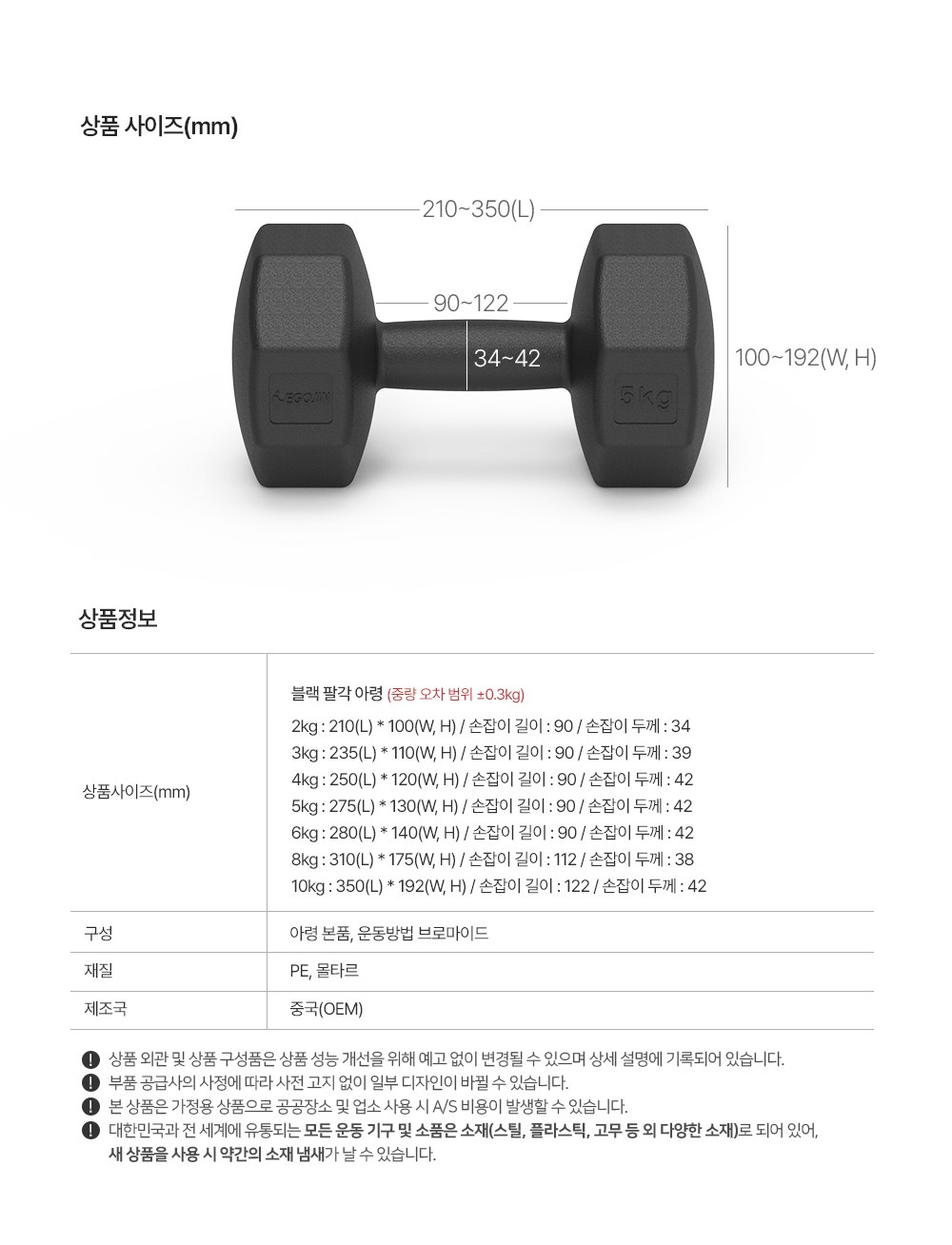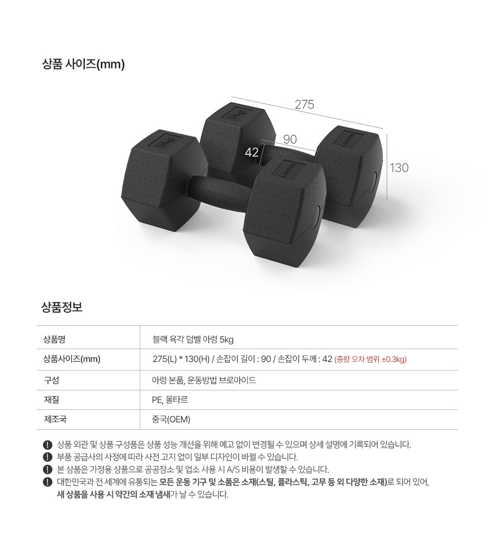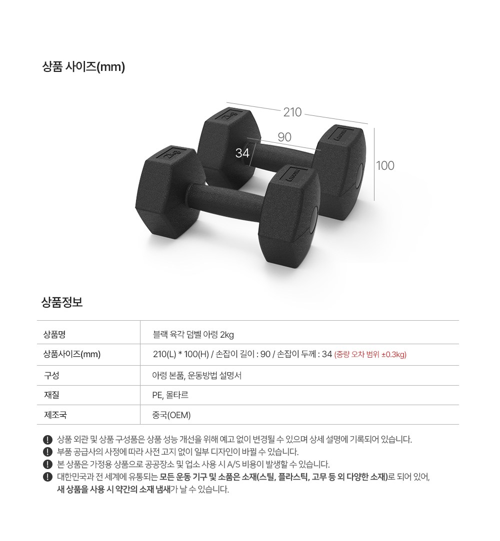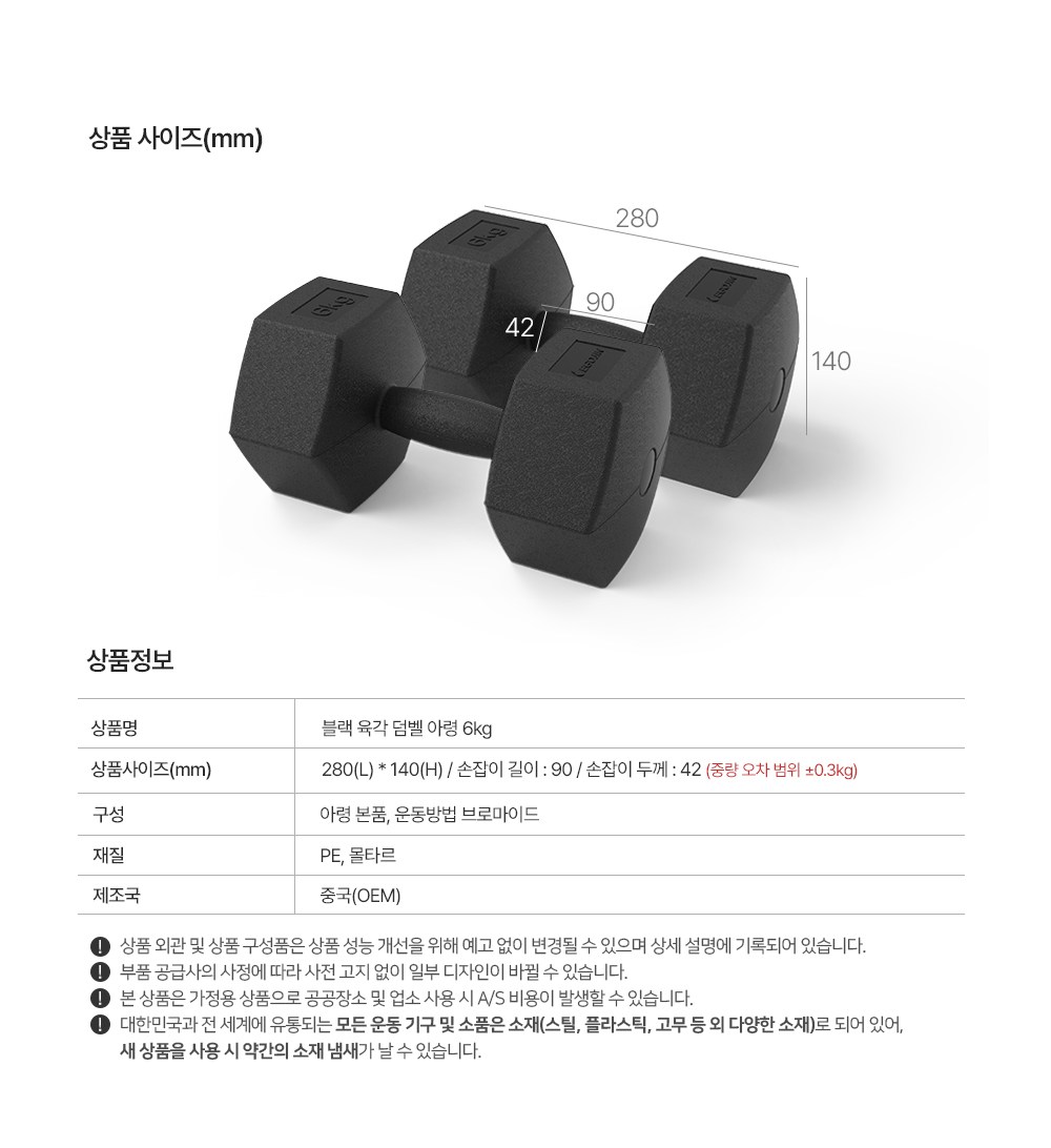 | 품명 및 모델명 | 블랙육각 아령 | KC 인증정보 | 해당없음 |