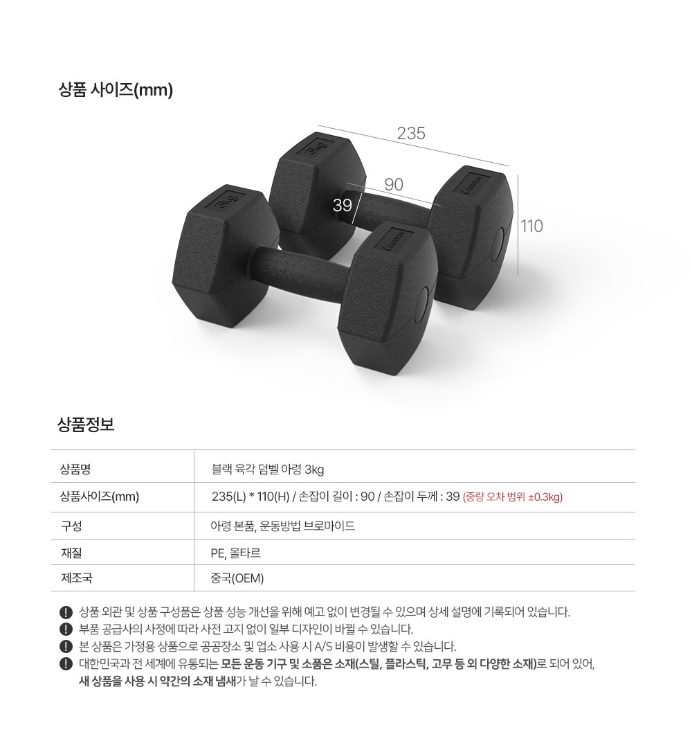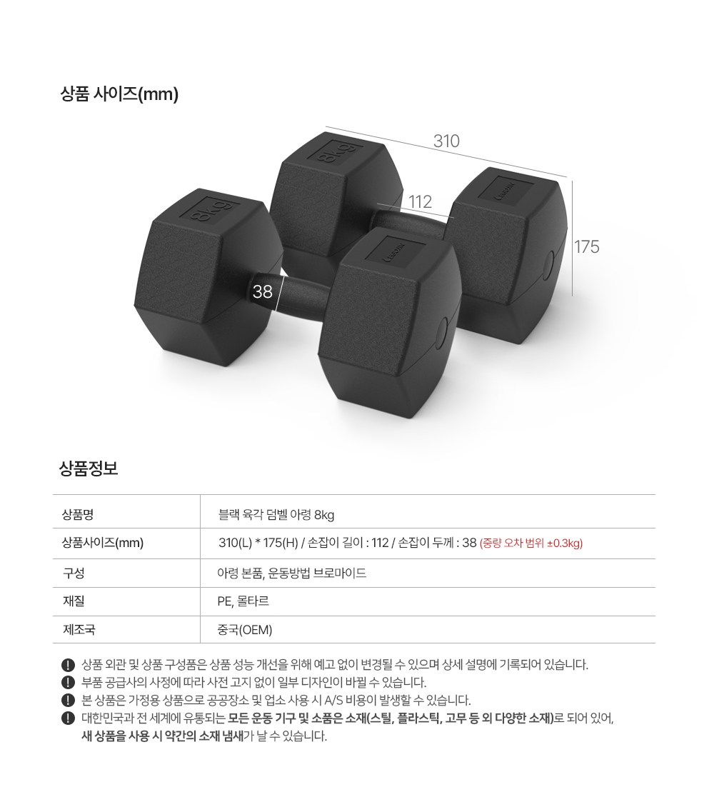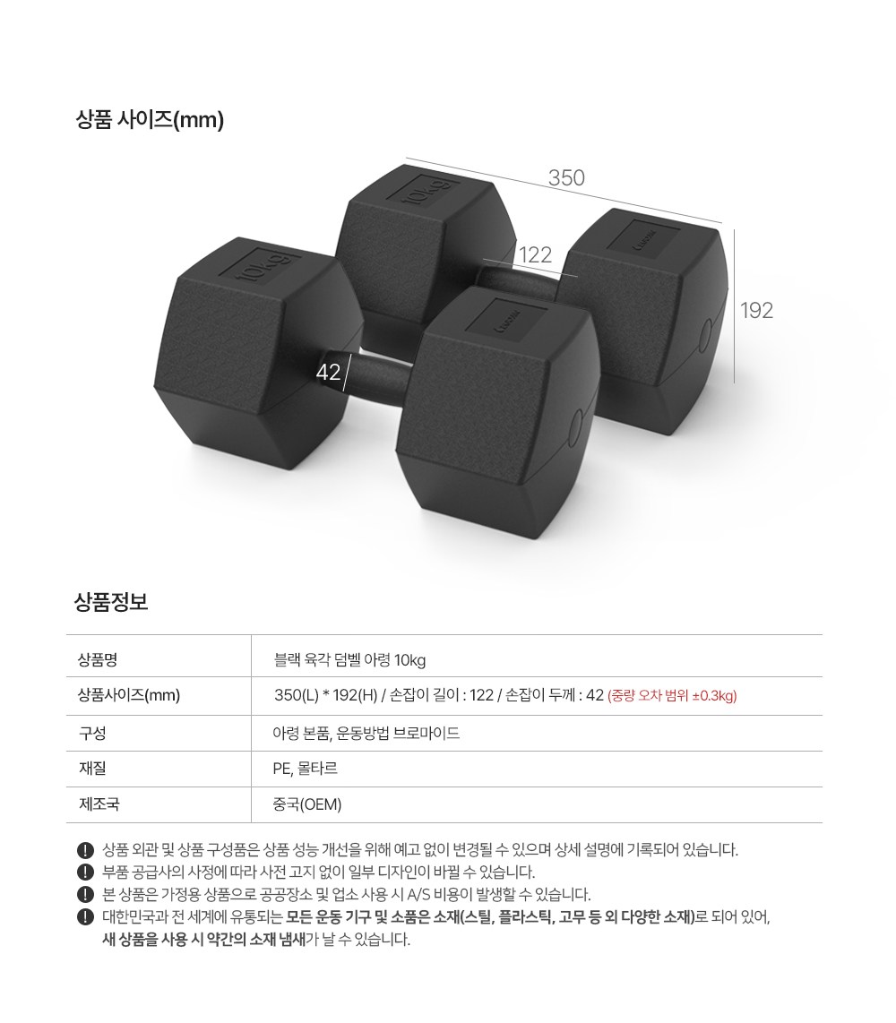 | 품명 및 모델명 | 블랙육각 아령 | KC 인증정보 | 해당없음 |