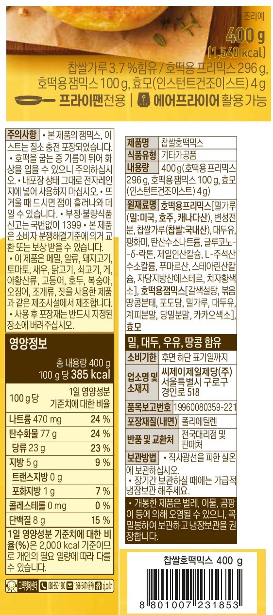 | 포장단위별 내용물의 용량(중량), 수량 | 400g x 3개 | 원재료명 및 함량 | 컨텐츠 참조 |