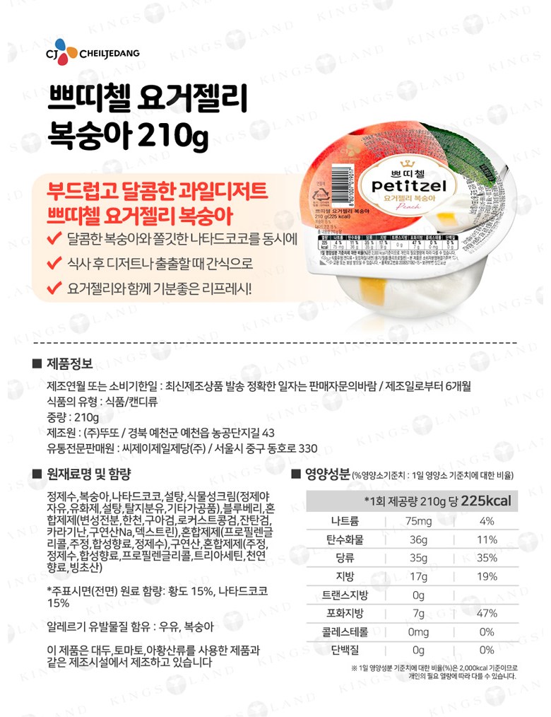 | 제품명 | 상품 상세페이지 참조 | 식품의 유형 | 상품 상세페이지 참조 |