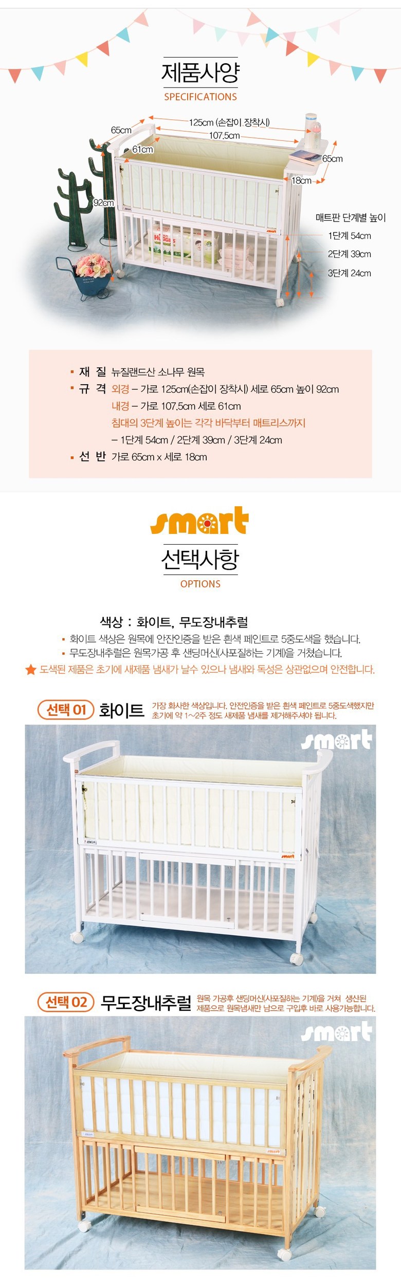 | 색상 | 화이트,내추럴 | 재질 | 원목(뉴질랜드산소나무), 합판, PVC 외 |